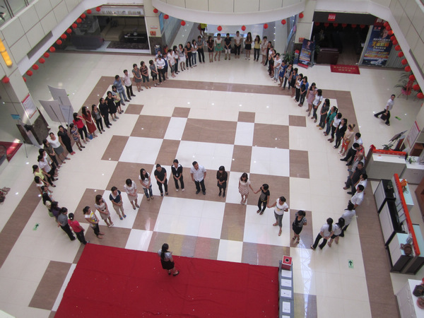 (捐款倡議現(xiàn)場(chǎng),所有員工圍成一個(gè)心形)