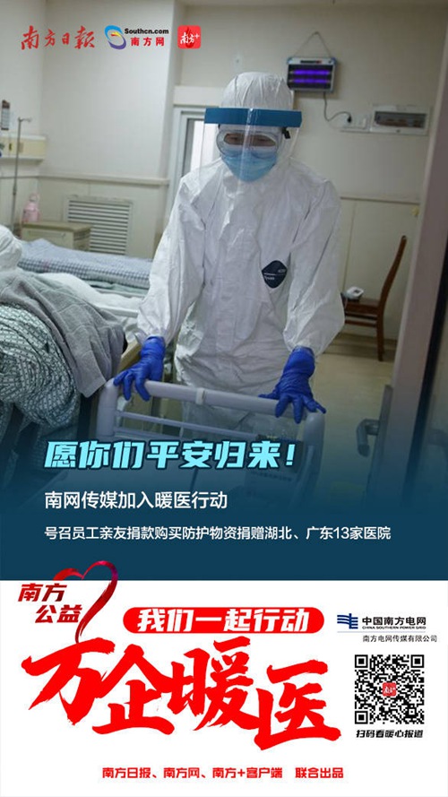 3月3日,南方日?qǐng)?bào)、南方網(wǎng)、南方+客戶(hù)端正式啟動(dòng)“萬(wàn)企暖醫(yī)——我們一起行動(dòng)”公益活動(dòng),旨在聯(lián)合社會(huì)力量用實(shí)際行動(dòng)為奮戰(zhàn)抗疫一線(xiàn)醫(yī)務(wù)人員及家屬解難事、幫家事。同時(shí)發(fā)揮媒體平臺(tái)連接、傳播價(jià)值,匯聚社會(huì)力量為打贏(yíng)疫情防控戰(zhàn)役貢獻(xiàn)廣東媒體力量。